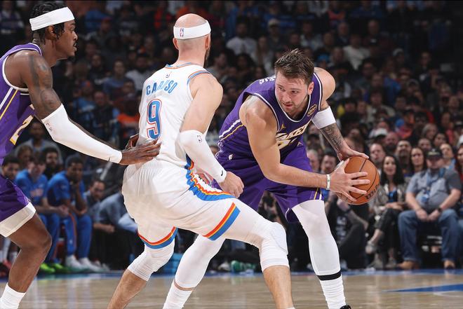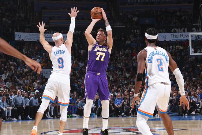 雷霆隊(duì)的策略也十分清晰,在常規(guī)對(duì)位中擁有足夠防守資源的情況下,雷霆隊(duì)堅(jiān)決不給東契奇通過(guò)擋拆小打大的機(jī)會(huì),每當(dāng)東契奇試圖通過(guò)擋拆點(diǎn)名中鋒時(shí),雷霆隊(duì)都會(huì)毫不猶豫夾擊他。