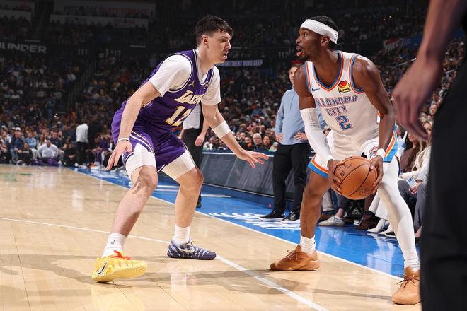 湖人隊(duì)也曾在比賽中試圖通過(guò)復(fù)刻雷霆隊(duì)的防守方式來(lái)限制亞歷山大,但暴露出湖人隊(duì)與雷霆隊(duì)在防守端的本質(zhì)差距,即球員自身防守能力的巨大差別。