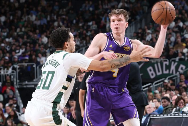 本場比賽中,湖人的替補(bǔ)側(cè)翼新星道爾頓-克內(nèi)克特(Dalton Knecht)的表現(xiàn)其實(shí)還算不錯(cuò),他的狀態(tài)也是有了一定的提升??藘?nèi)克特全場出場33分48秒,投籃8中4,三分線外4中1,得到了9分6籃板1助攻3搶斷1蓋帽的數(shù)據(jù),正負(fù)值也是達(dá)到了+24??藘?nèi)克特在進(jìn)攻端手感平平,但還是得到了一些分?jǐn)?shù),至少也是做出了一定的貢獻(xiàn)的。不過至少在本場比賽中,克內(nèi)克特在防守端的表現(xiàn)絕對(duì)是值得肯定的,他有著很高的防守積極性,這樣的積極性也是帶來了不錯(cuò)的防守效果,他并沒有出現(xiàn)什么防守方面的問題。至少在本場比賽中,克內(nèi)克特在攻防兩端的不錯(cuò)表現(xiàn)也為球隊(duì)的勝利提供了不少的支持和幫助,而他的表現(xiàn)也得到了球隊(duì)教練組的認(rèn)可,他也是得到了大量的出場時(shí)間。