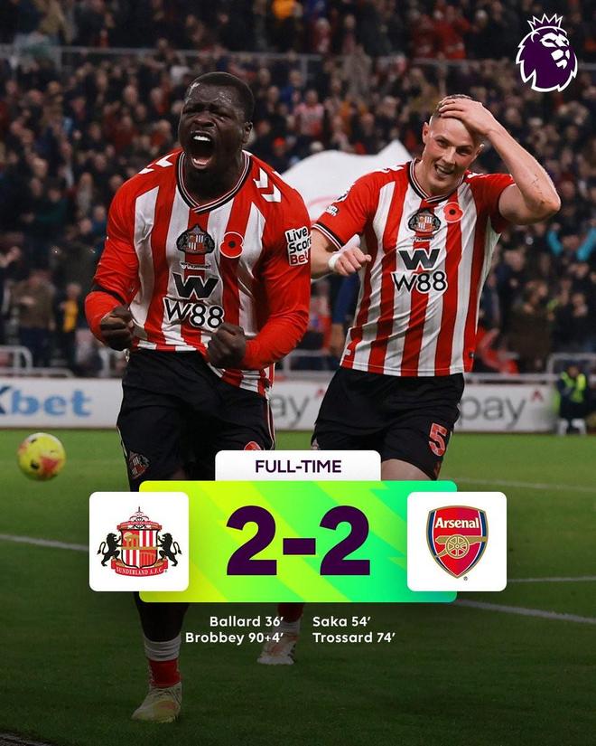 此役客場對陣桑德蘭,阿森納在比賽第94分鐘被布羅貝伊攻破球門,最終2-2戰(zhàn)平對手,丟掉2分。